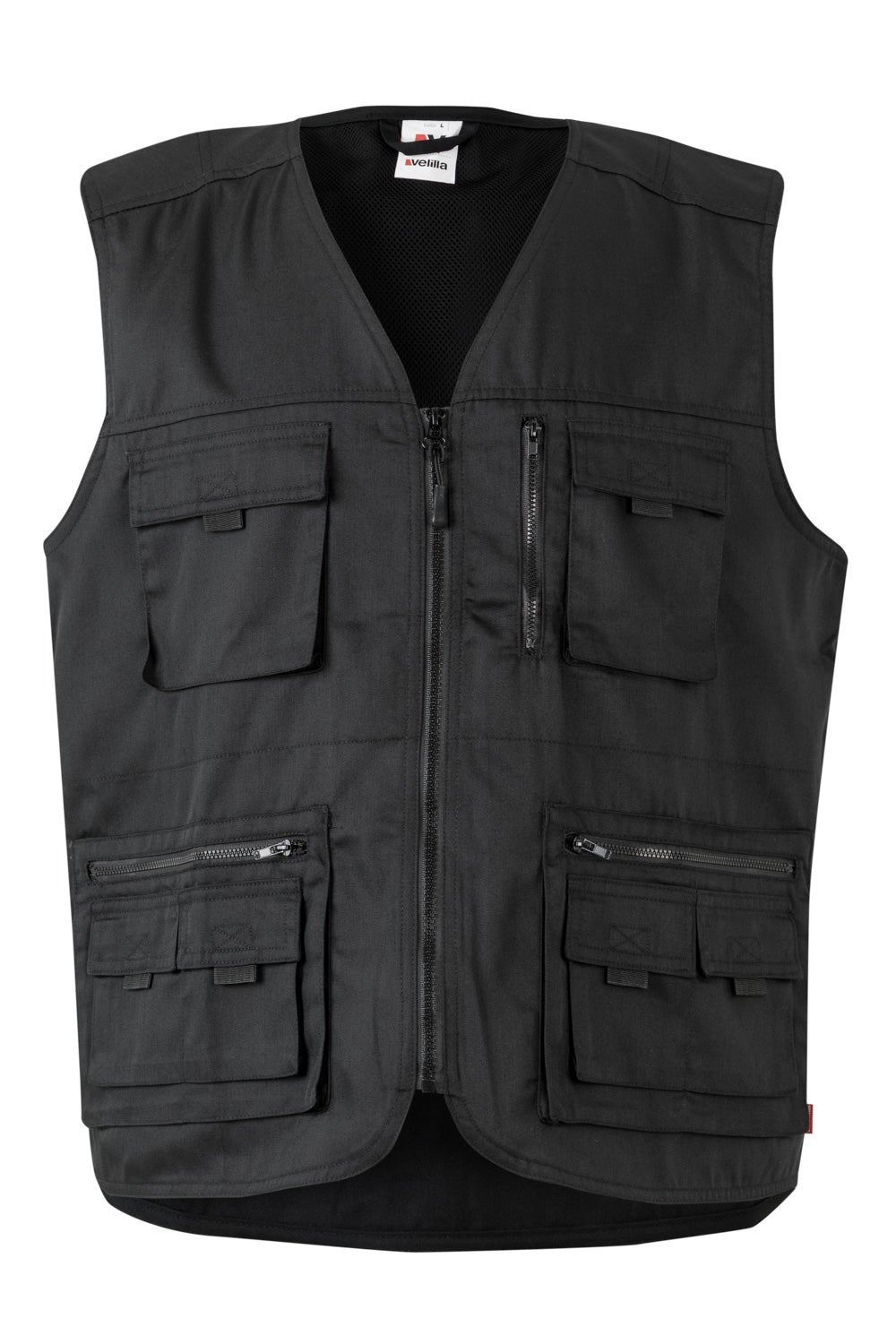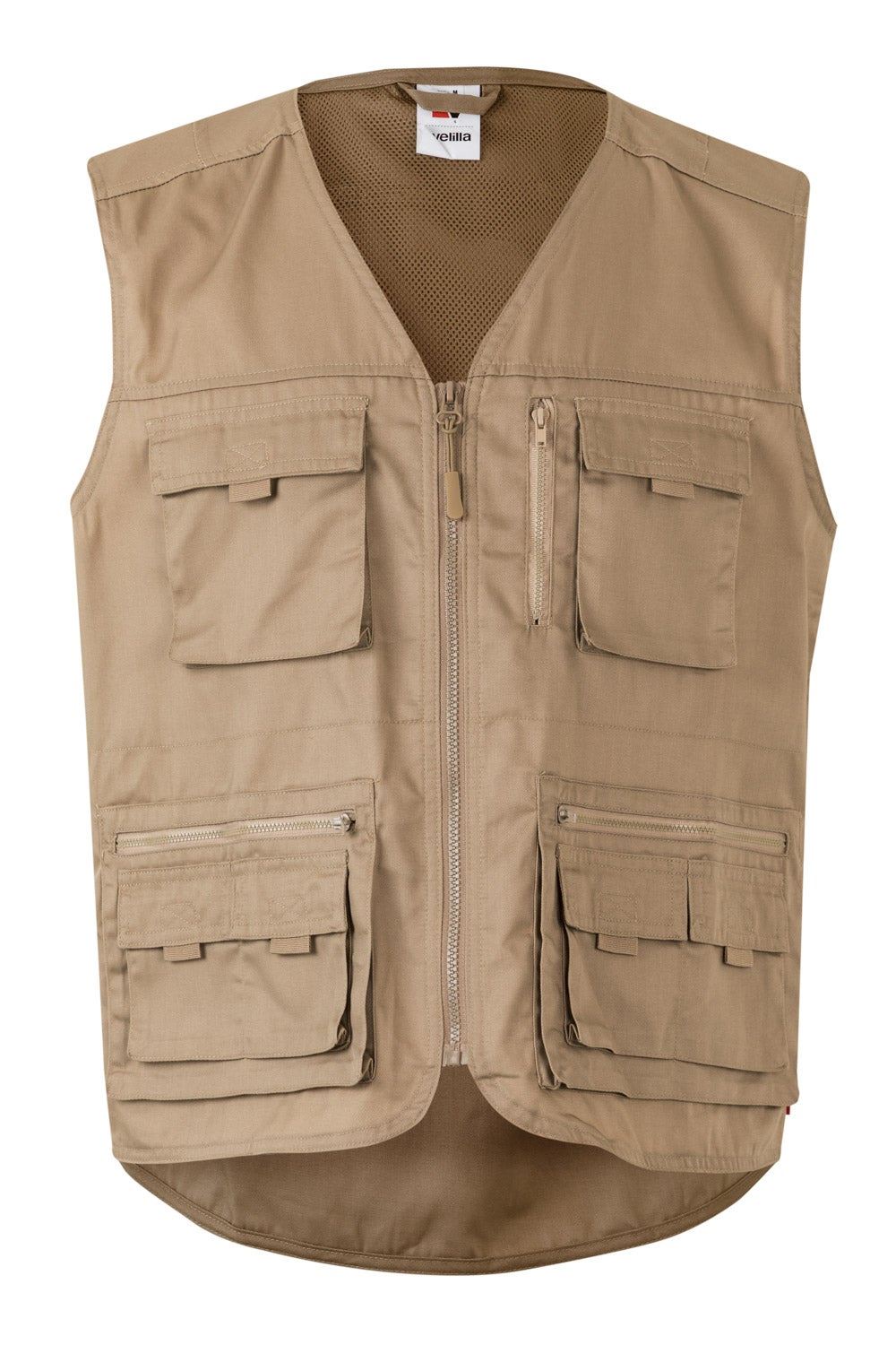 Nueve bolsillos: 2 bolsillos de fuelle en el pecho, con tapeta, tirador y velcro; 1 bolsillo en el pecho, vertical con cremallera; 2 bolsillos inferiores de fuelle con cremallera y, sobre ellos, dos bolsillos con tapeta, tirador y velcro