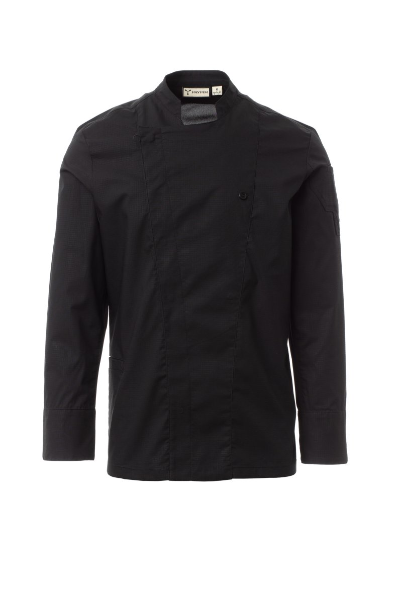 Chaqueta de cocina para hombre con cuello mao, confeccionada en ripstop de algodón y Lycra® T400®, con excelentes